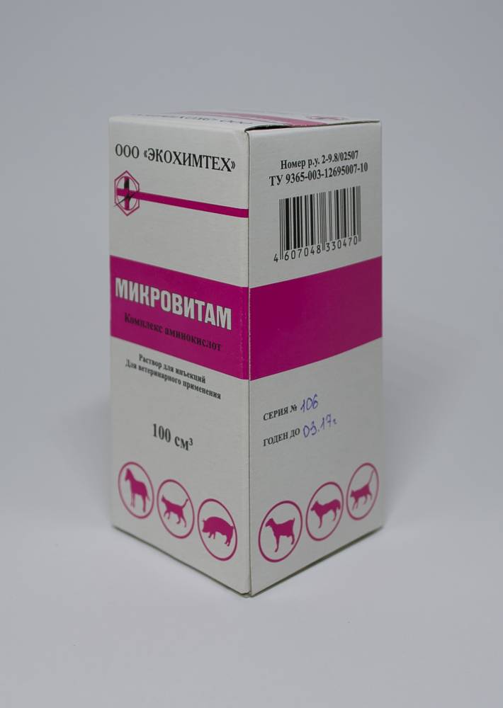 Микровитам содержит физиологически сбалансированный полный комплекс заменимых и незаменимых аминокислот и является экологичным и безвредным для животных и людей препаратом отечественного производства.