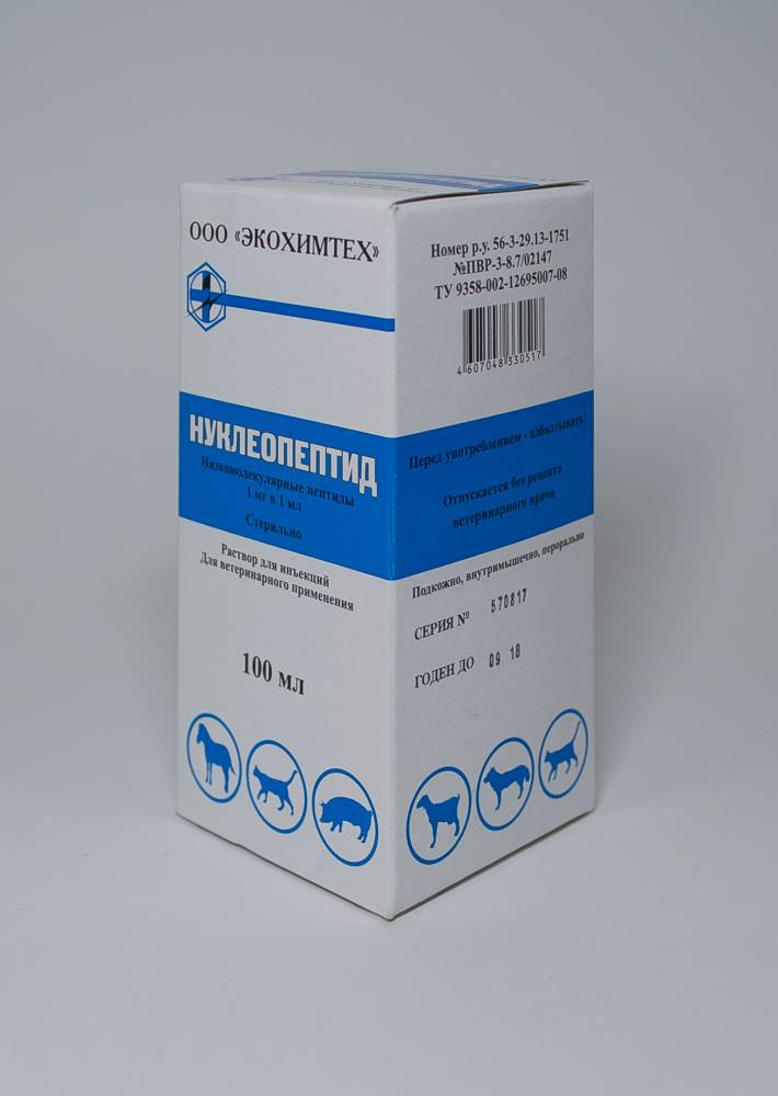 18. Нуклеопептид не вызывает у животных побочных действий и осложнений при применении в соответствии с настоящей инструкцией.